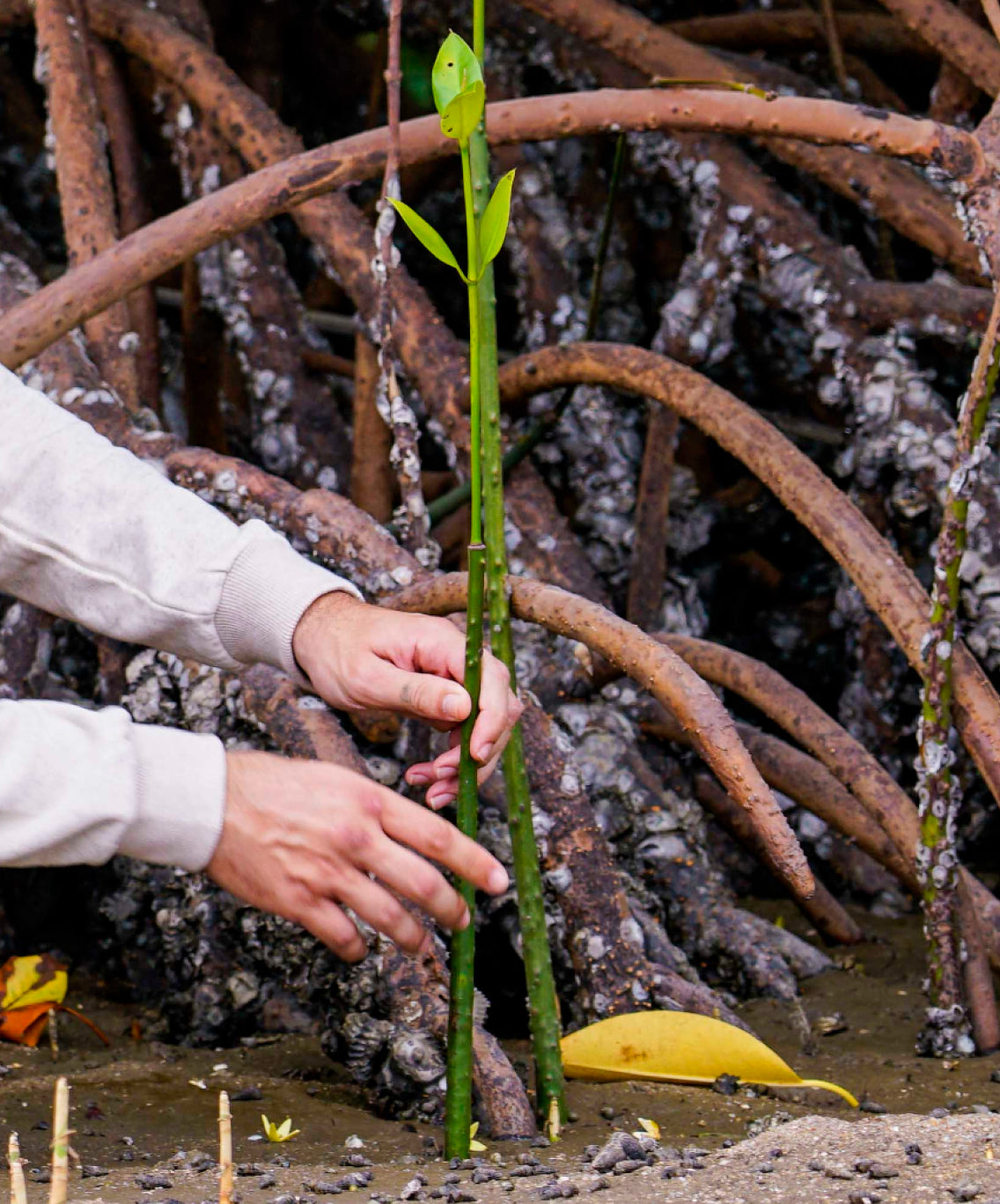 We calculate these emissions and plant 1 VCS certified mangrove for every item made to sequester/ draw down that amount of carbon 10 times over during a 25 year period.