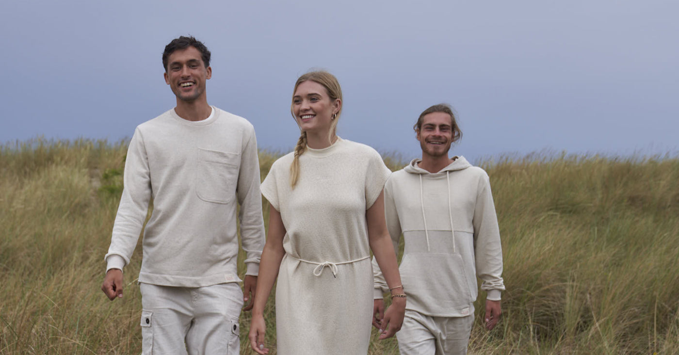 We turn the impact of purchasing new products upside down by drawing down 10 X more CO2 than the full production of the item. Despite only using organically grown materials, we pick up 1.4 kg of beach / ocean plastic per item sold, the average amount of plastic that reaches the ocean annually per person.